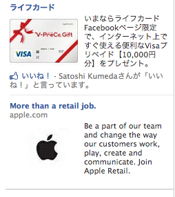 まあ、私の意見としては前々から言うように、広告宣伝費が潤沢な大企業は、Facebookではなくてテレビや新聞にお金を使ったらよろしい。Facebook広告はFacebookページにのみ誘導し、そこではファンの熟成や新規獲得に使う。そもそもファンが圧倒的に多い有名企業やマスでバンバン広告打てる企業は、誤差程度にしかならないのでやる意味自体がよく分からない。Facebookに担当1人付けるなら、その分マス広告をもっと効果的に使うためにその人材を充てたほうがよほど有意義じゃないのかな。代理店に「これからはFacebookです」とか「ソーシャルやらないと」って言われて焦る気持ちはわかりますけどね。