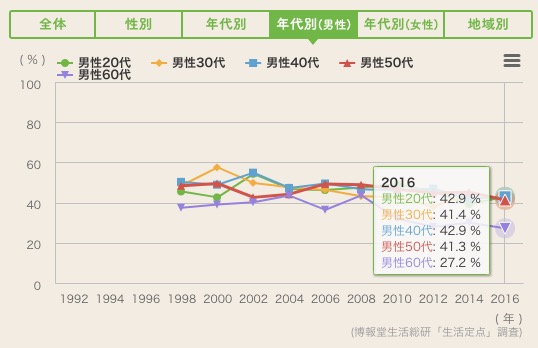 50代男性を除いてほぼすべての年代で女性を上回っている。これは女性は腹立つよね。ww