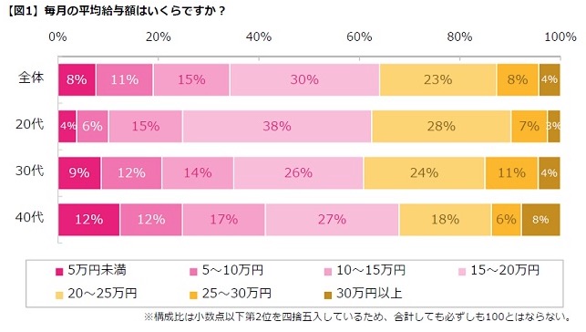 マイナビの調査ですと・・・・働く女性の平均収入は20万円未満が6割もいて、
