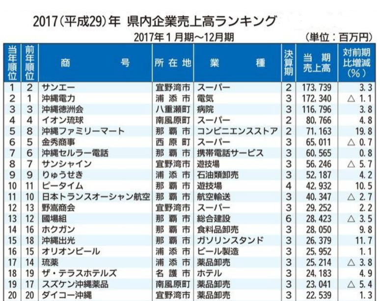 と、確かに所得か少ない。沖縄の主要産業は大企業が全然なく、あとは公共工事と米軍基地で食ってるわけです。沖縄タイムスの沖縄の売上ランキング見たら分かる。