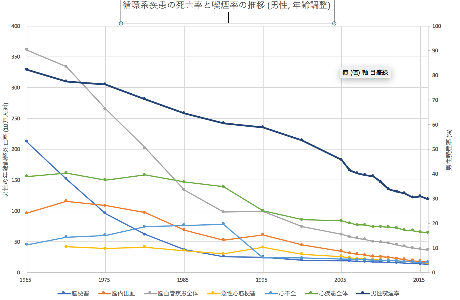 タバコがこの世から無くなれば2割のがんが発生しないわけですから、腫瘍医や外科医などのお仕事が激減します。もっともがんは喫煙しても発症まで数十年のタイムラグがあるのですぐには減りません。すぐに効果があるのが、脳疾患、心疾患や呼吸器疾患です。これはがんと違ってタイムラグが小さいので喫煙率の低下と共に発症率も下がっています。タバコが大幅に値上げされれば患者数は激減。