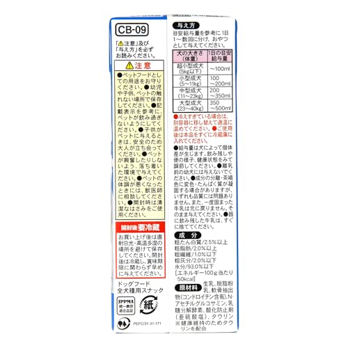 1本1000円!!!200ccですのでワイン720mlなら3600円の高級ワインに相当!!1ccが1kcalという高カロリーですので、これを1日1本飲ませます。なかなか飲まないので大好きなワンコ用ミルクと混ぜて人肌になるように電子レンジでチンしたあとよく混ぜます。ワンコ用のミルクは