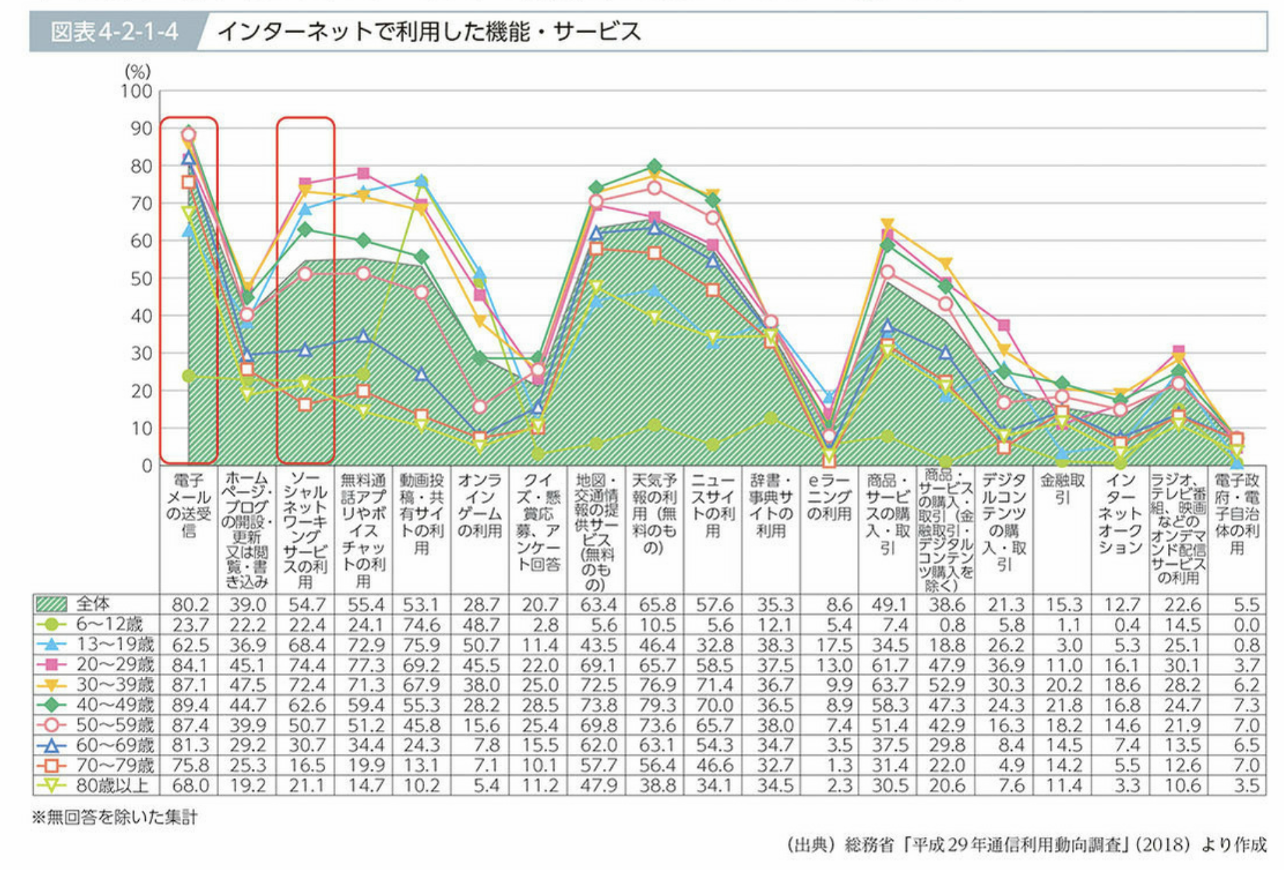 ニュースサイトを見ているのは若年層と60歳以上では半数程度しかおらず、若年層は新聞も雑誌も読んでないわけだからこれじゃ無知が進むわけだ。動画の利用の方が7割弱とよほど多い。しかし、この調査、どうして「検索」っていう項目がないのかね。一番知りたいのに。