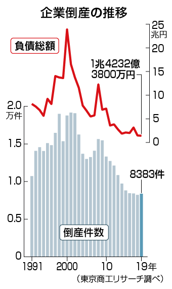 倒産件数が爆増したのは直後ではなく、5〜6年してからです。