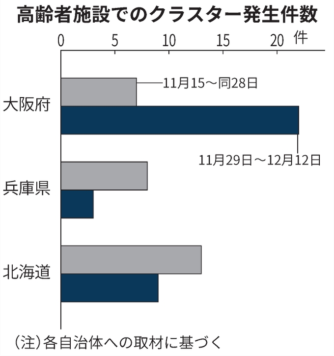 特に多いのが大阪府で、ここ2週間で確認されたのは20施設を超え、10月上旬までの約4カ月間の発生件数を上回った。