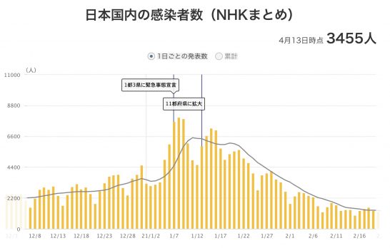 ということになります。死者数は同日のイギリスは13人、日本は18人ですから人口を合わせると日本の1.4倍。ワクチンの効果は出ているようです。その結果