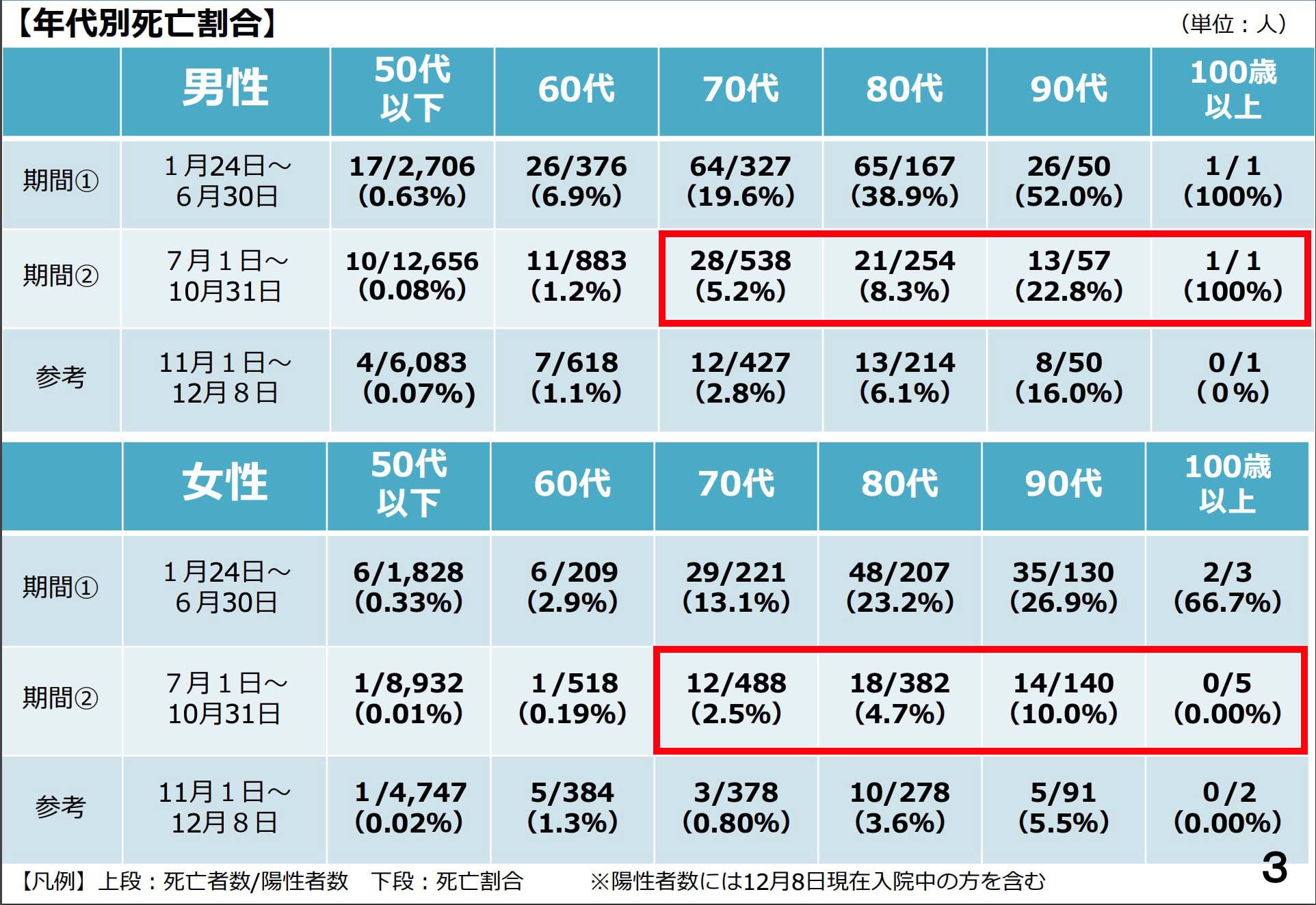 ところでワクチンでどのくらい致死率は下がったのか。去年の夏とワクチンを終わった今年の7月で比較します。対象はワクチン接種率の高い70歳以上の高齢者です。