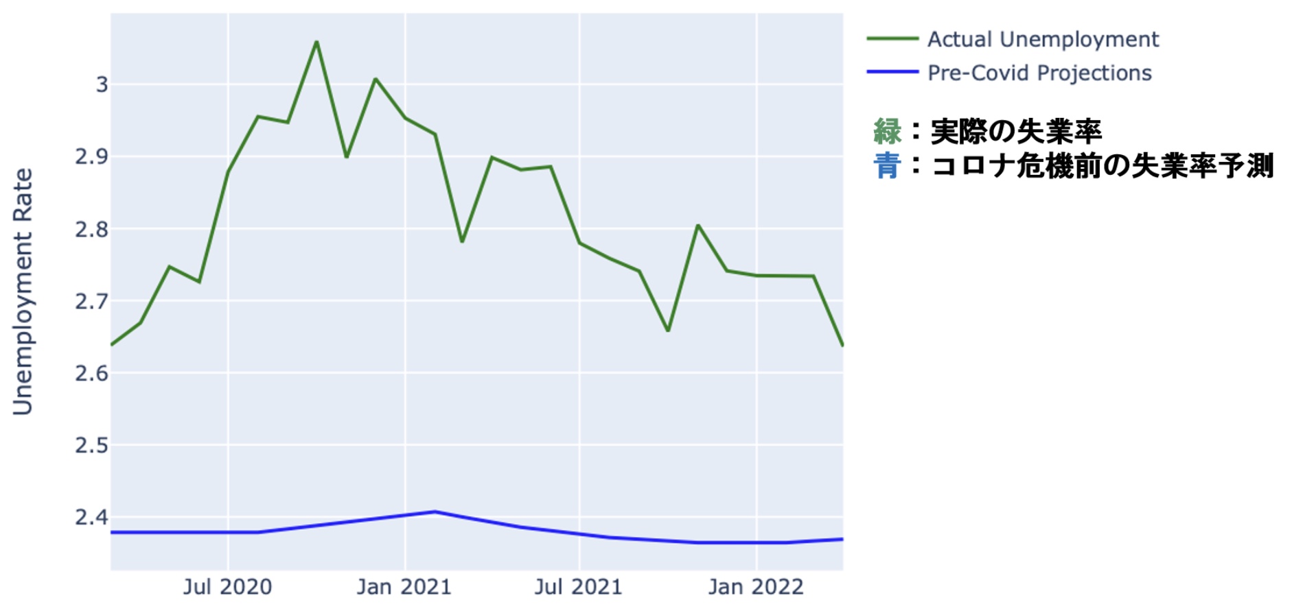 実際の失業率推移はこうなりました。
