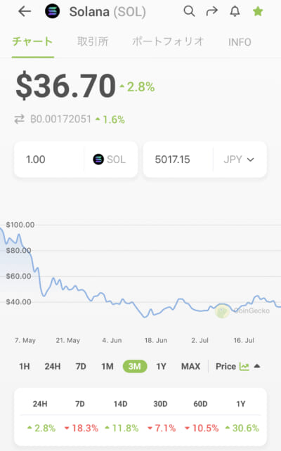 ちなみにソラナはほかの仮想通貨もそうですけど下がってまして今がお買い時。