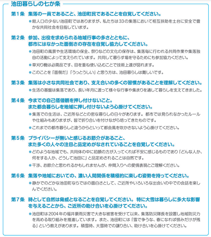 ただいま、炎上しております、福井県の池田町の広報誌に載った「池田暮らしの七か条」。