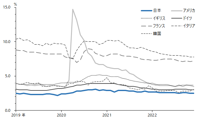 コロナ禍では日本では完全失業率が1%上がった程度。