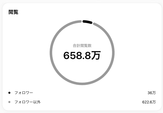 フォロワー数が半分のThreadsの閲覧が2倍。要するにXよりThreadsの方が4倍見てもらえるわけですね。