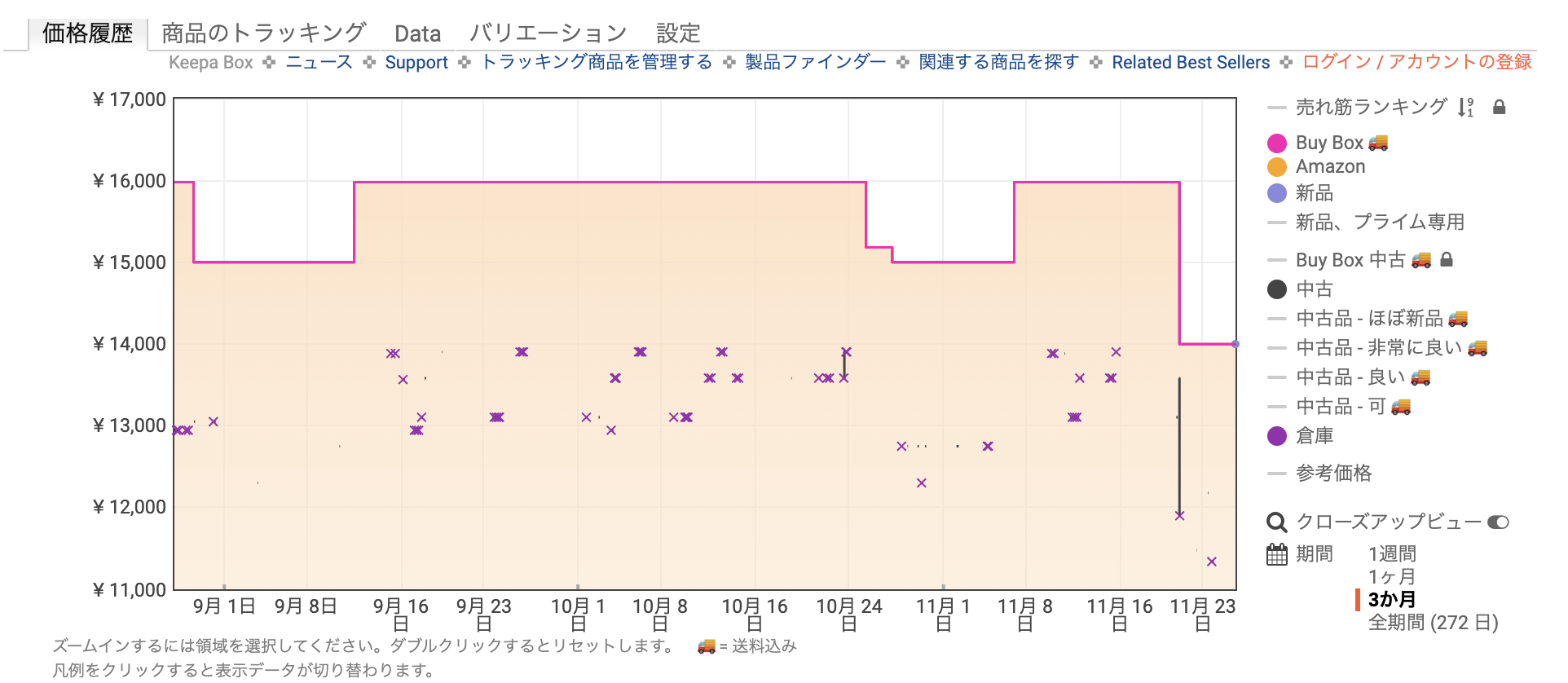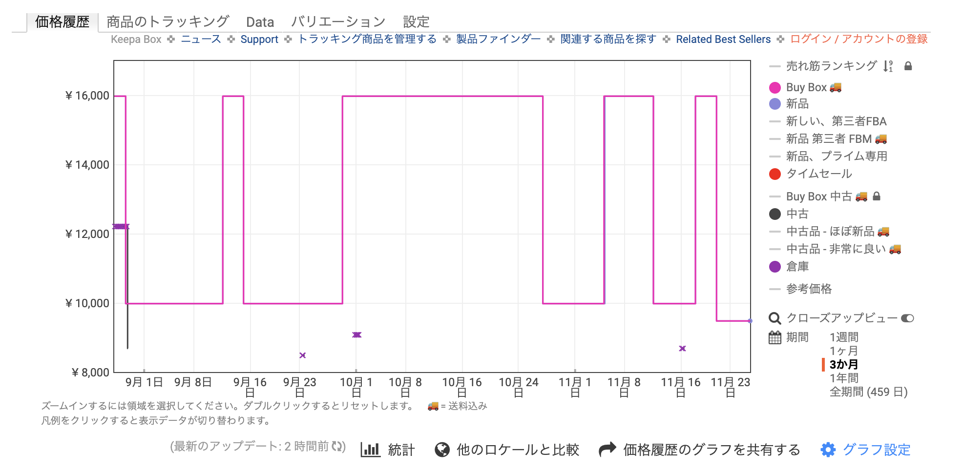Keepa™はスマホアプリにもありますけどPCのブラウザが使いやすい。