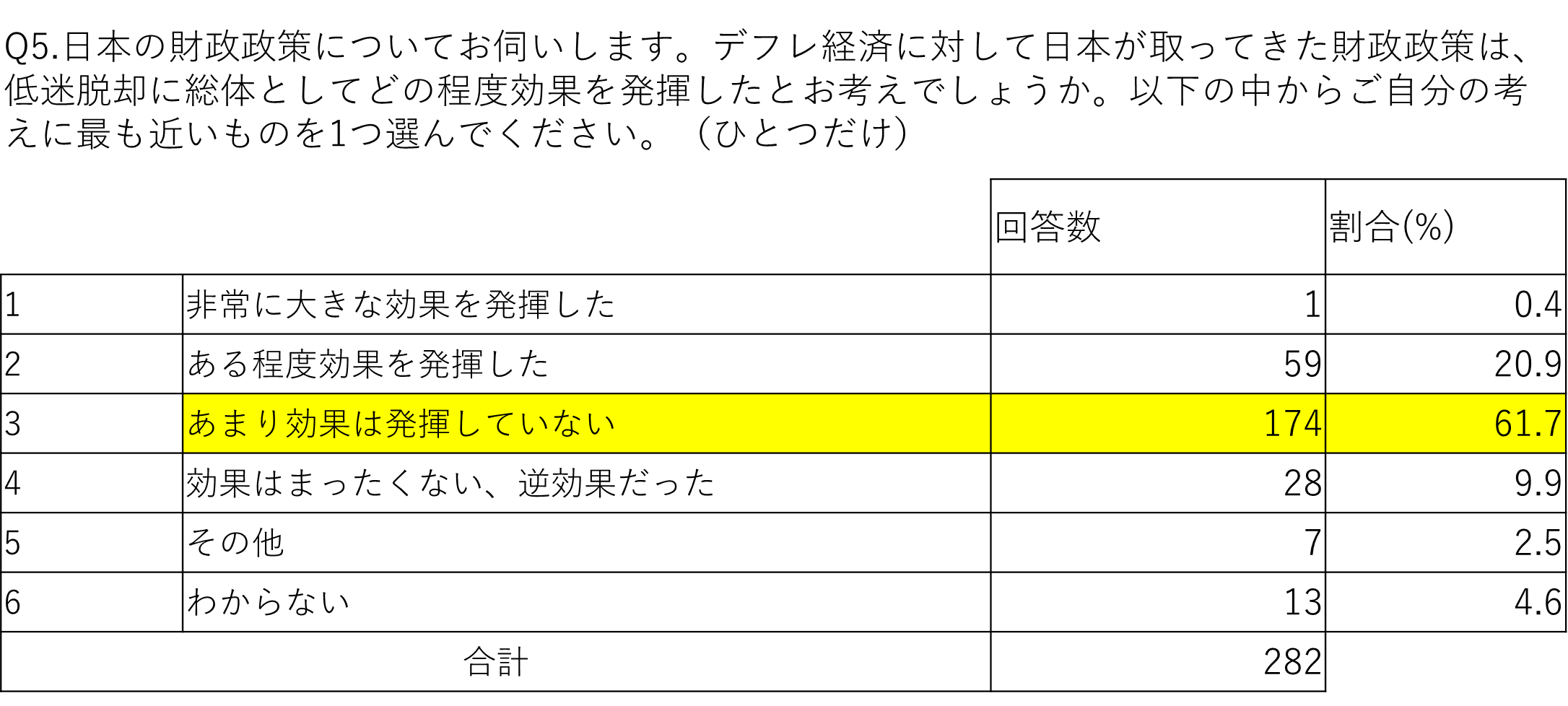 アベノミクスの評価については日本の大半の経済学者はこのように回答しています。