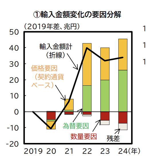 内閣府資源高+円安の組み合わせで輸入額が膨らみやすいといっています。