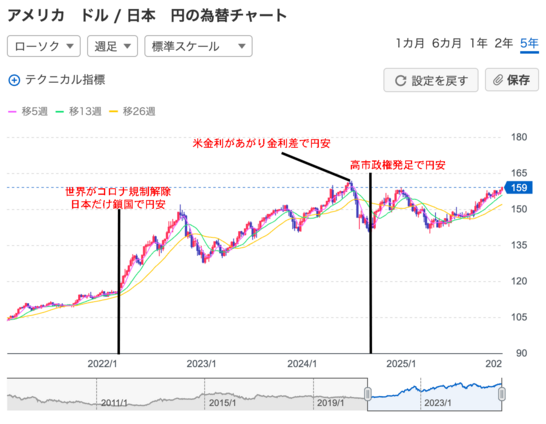 とくに高市政権は赤字国債で財政出動というほとんどの経済学者はオススメしない手法を採るとしているので米国との金利差がこんなに詰まっているのに円安が続いてきました。