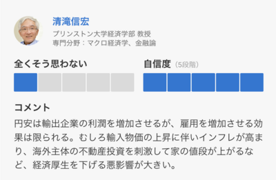 円安が日本経済に良いと強く思う人はゼロ。高橋洋一がいかに異端か分かると思います。